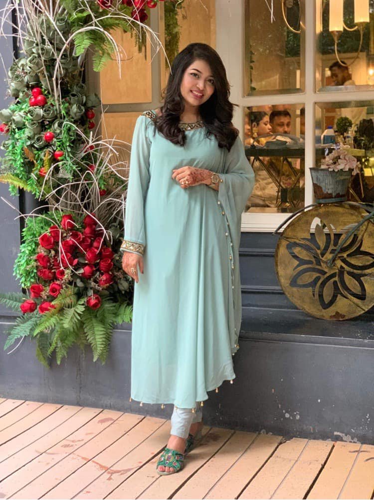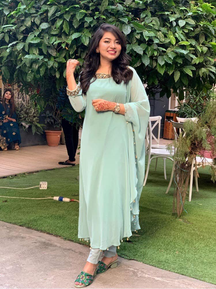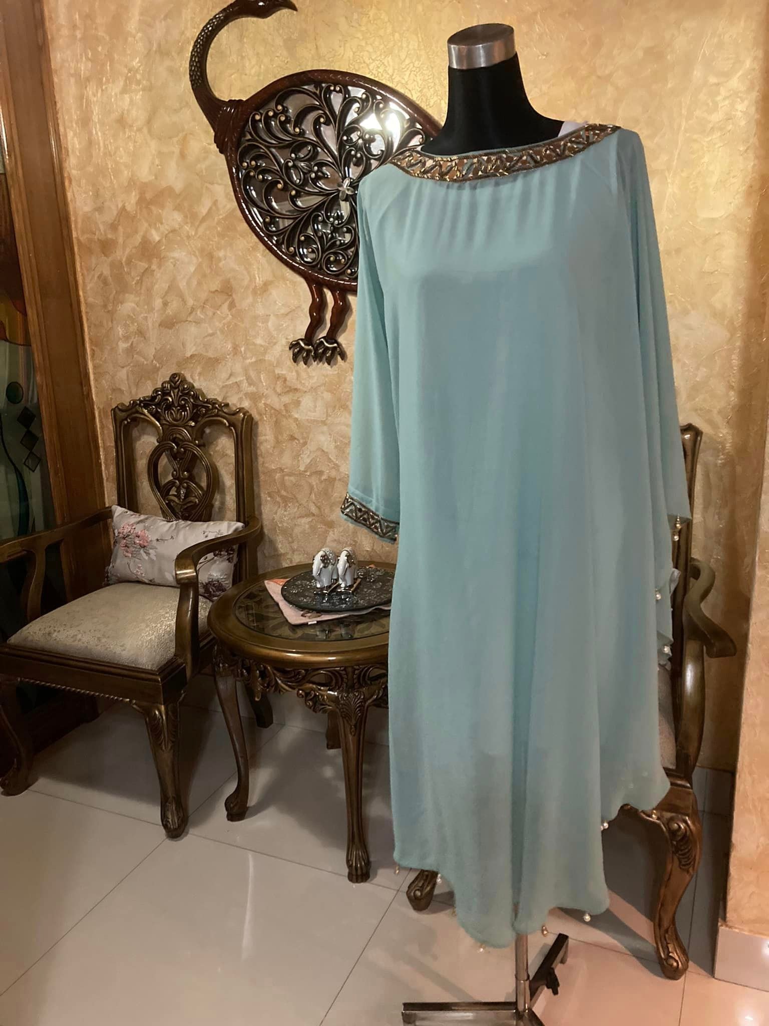 ntroducing our Fashionable Cape adorned with captivating mirror work, now available in a serene light sea green shade at Bally’s Boutique.